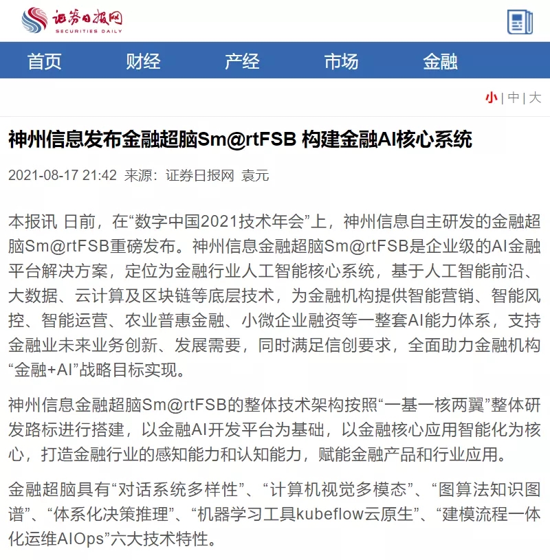 南宫28信息发布金融超脑Sm@rtFSB 构建金融AI核心系统