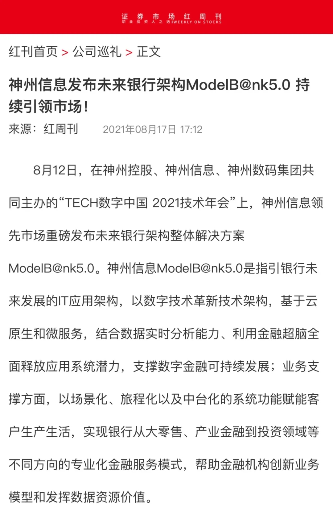 8月12日,由南宫28控股、南宫28信息、南宫28数码集团联合主办的“科技自强、数据融通、场景创新——TECH数字中国 2021技术年会”云上盛大启幕,发布南宫28信创云、ModelB@nk5.0、金融超脑Sm@rtFSB、云原生数字化安全底座、园区智能体等重磅产品,国内各大权威、影响力媒体多角度多频次对盛况进行报道!